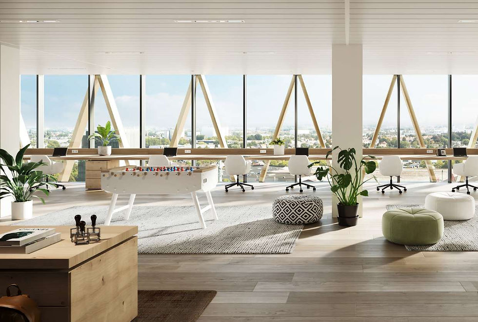 Exclusieve kantoorruimtes op de hoogste verdiepingen van Westwing Tower met panoramisch zicht op de omgeving.